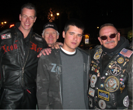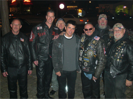 Started getting dark early,we staged at a gas Station 3 Blocks from where Cordell was staying. His Aunt ( mom) Tracey was on her way to meet us.She was on her bike,her fiance’ Uwe rode also. So, by the time tracey got to staging,we were 17 bikes strong. With them made 19 and 3 cages and a Spyder. We started out to the house,which was just around the corner.So,we parked infront of the house,and tracey goes inside to bring cordell out.The look on his face “Priceless”,Tracey & Uwe also had this look of disbelief.All this for my kid,was tracey’s remarks.