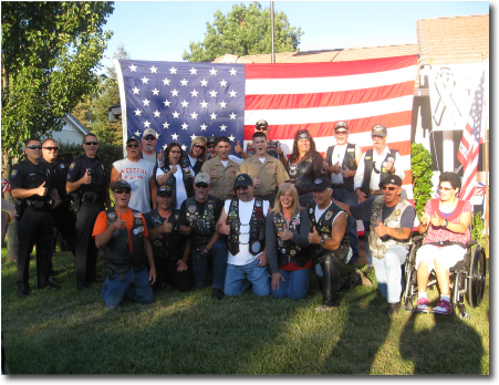 before we left,so they could finish the house.Then Snapshot called and gave me the green light,we gathered up everybody and headed out.We got to the house where PD had their lights on and we had approx 50+ folks there.Also joining was a special friend Brig. General Dan Helix who shared some wisdom of why we are there.Turned out to be a great night,Mom (joann) sang for us,The Marines were given coins,letters, and tons of hugs.Thanks to Trevor(our official WWR Chaplain) great pre-ride prayers. All the groups LFB , PMF , VFW,AL,ALR,PGR.and WWR you rock my friends