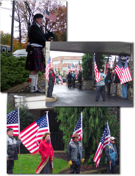 To me, a true friend is one who is there not only in times of celebration, but also, just as reliably, in times of mourning. The Warriors’ Watch Riders who had helped to celebrate Ryan’s homecoming could not be kept away from the observance of his darkest time. FIVE short days after escorting Ryan home, we found ourselves escorting his father’s funeral procession. The memorial service was held at the Bradley funeral home in Marlton, and the family and we both were given unprecidented support from the Evesham Township police department and local government. The Mayor of Marlton, Randy Brown, was there for the homecoming, and to his everlasting credit he was there for the funeral as well. A good guy, that Mayor, a good friend of the Wilno Family and of the Warriors’ Watch Riders. (This proved to me that he is a man who will be there for more than mere photo-ops. That is worth something to me.)