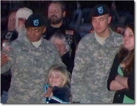 PV2 Hyatt was returning home tonight for a visit home before his deployment. He was returning with his friend PFC Johnson who is from California.