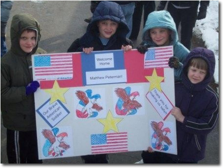 There is something about the excitement that school kids bring to a welcome home for a homecoming hero and never was it more apparent than at the welcome home for PFC Matthew Peterman on Tuesday.
