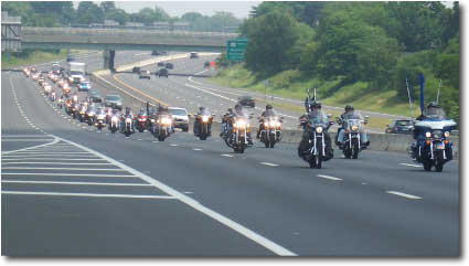 The family of SSG Pearce, for their kind hospitality, and their neighbors for putting up with a LOT of bikers. The local Police Department, Fire Department and the New Jersey State Troopers. The employees and management of Mike’s Famous Harley-Davisdon, for their help and hospitality. The Yellow Ribbon Club. A Hero’s Welcome, including Marine Cpl. Ray Henninger and his new bride. The American Sheepdogs. The Gathering of Eagles. The Camden County HOGS. The Nam Knights MC. The Second Brigade MC. The American Legion Riders, and ALL BIKERS AND VETERANS WHO SUPPORT THE WARRIORS WATCH.