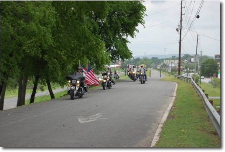 When I arrived at the staging area 1 bike was already there, soon more arrived. We had our Mission briefing, Pledge of Allegiance to the Flag, Prayer, and mounted up for the short ride to Heritage Park,. We arrived at the location with 8 Bikes, 3 Cages, and 22 Members, and were met by members of the Camellia Garden Club and local officials. We set up a double Flag Line for all to walk thru as they arrived for the Ceremony, then repositioned to form a back drop for the Ceremony. The American Legion Post 5 Honor Guard; Presented the Colors, speeches were made by members of the Camellia Garden Club, the Federated Garden Clubs of GA. and Local Officials.