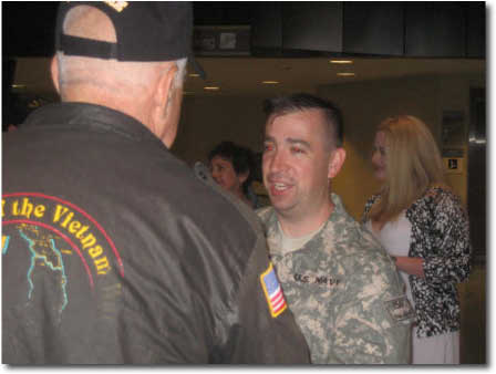 We went back to the gate where Pvt. Wentline’s plane had just landed and passengers were coming through. No Marine! We made a phone call, to find out that his first flight had been delayed, and he was transferred to a flight going to Philadelphia! So, we missed him, but still completed a Welcome Home mission!